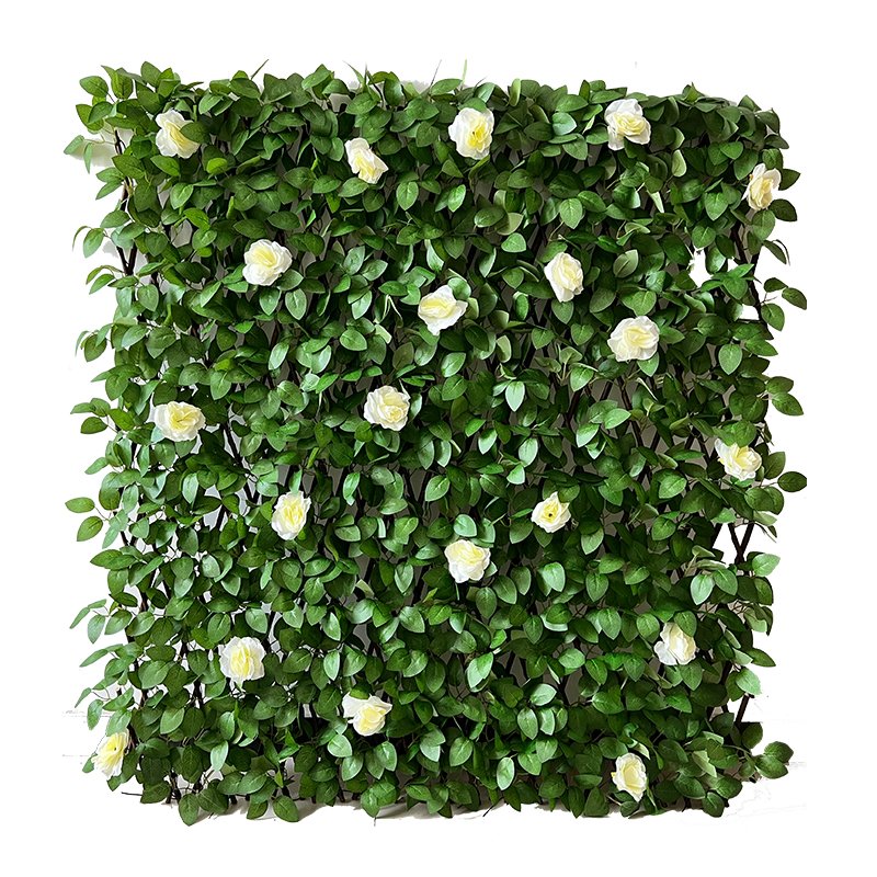 Δώστε μια πινελιά φυσικής ομορφιάς στον εξωτερικό σας χώρο με την συνθετική φυλλωσιά BORMANN BPN1204. Η πλούσια φυλλωσιά με λευκά τριαντάφυλλα, σε ξύλινο καφασωτό διαστάσεων 2x1m, προσφέρει άμεση αισθητική αναβάθμιση και είναι εύκολη στην τοποθέτηση.