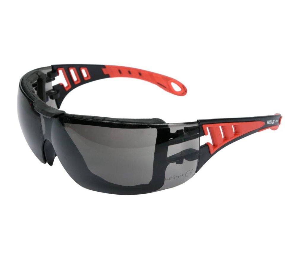Γυαλιά προστασίας μαύρα YT-73603, ιδανικά για εργασίες σε εξωτερικούς χώρους. Προσφέρουν αποτελεσματική προστασία από σκόνη, σπινθήρες και έντονο ηλιακό φως. Ιδανικά για χρήση σε κήπο, δάσος ή εργοτάξιο.
