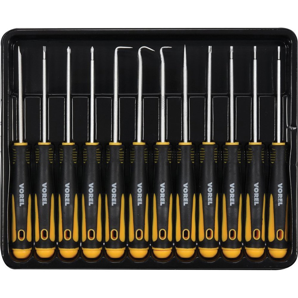 Σετ 12 ακριβείας κατσαβιδιών VOREL 64555, ιδανικό για επαγγελματίες και ερασιτέχνες. Προσφέρει μεγάλη ακρίβεια και αντοχή χάρη στην κατασκευή τους από υψηλής ποιότητας υλικά. Ιδανικό για όλες τις εργασίες που απαιτούν ακρίβεια.