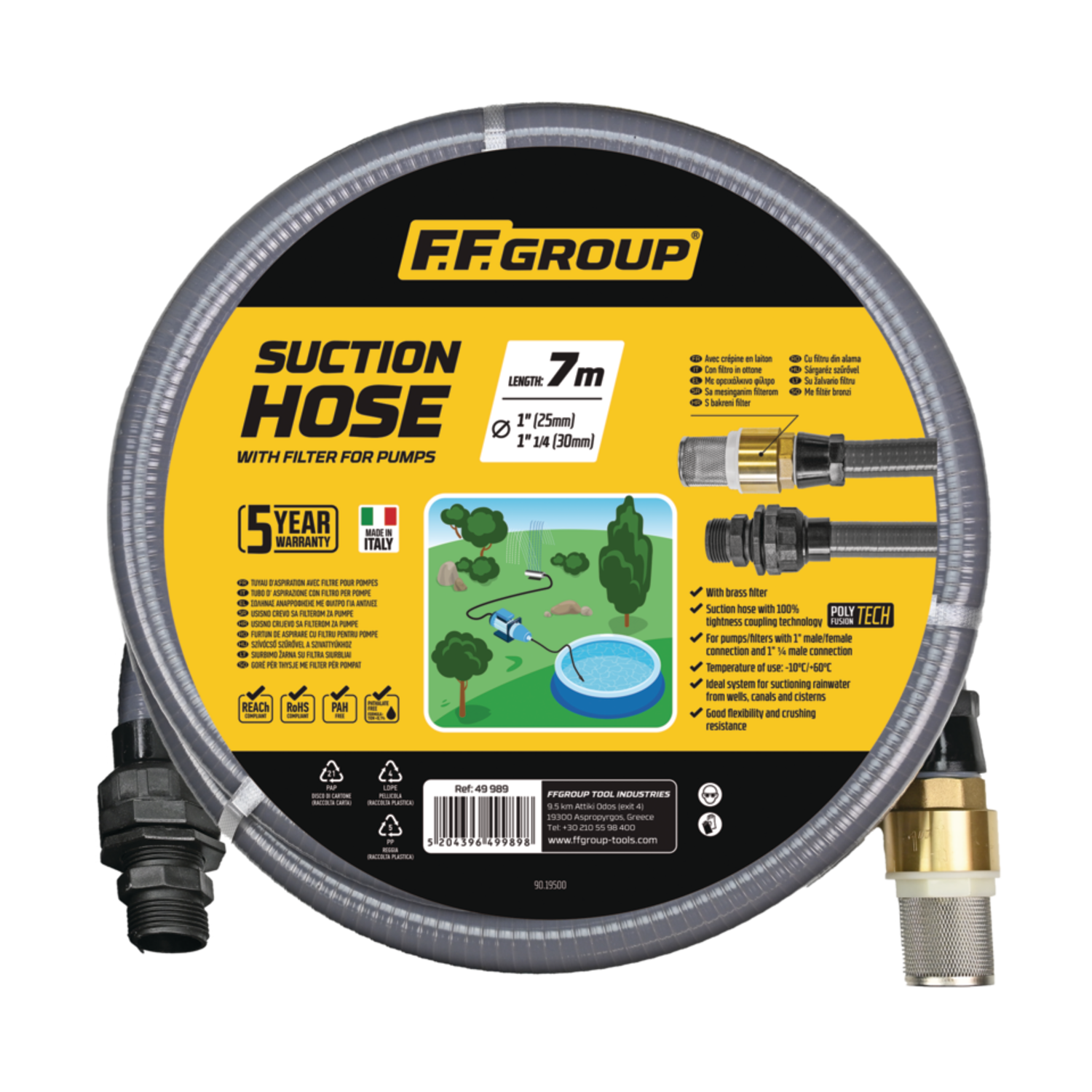Κιτ αναρρόφησης νερού με φίλτρο: σετ σύνδεσης που περιλαμβάνει εύκαμπτο σωλήνα αναρρόφησης και φίλτρο (συχνά με βαλβίδα αντεπιστροφής) για άντληση από λίμνες, δεξαμενές ή άλλες πηγές. Προστατεύει την αντλία από φραγμούς και βρόμικα σωματίδια και διευκολύνει την ασφαλή αναρρόφηση νερού.