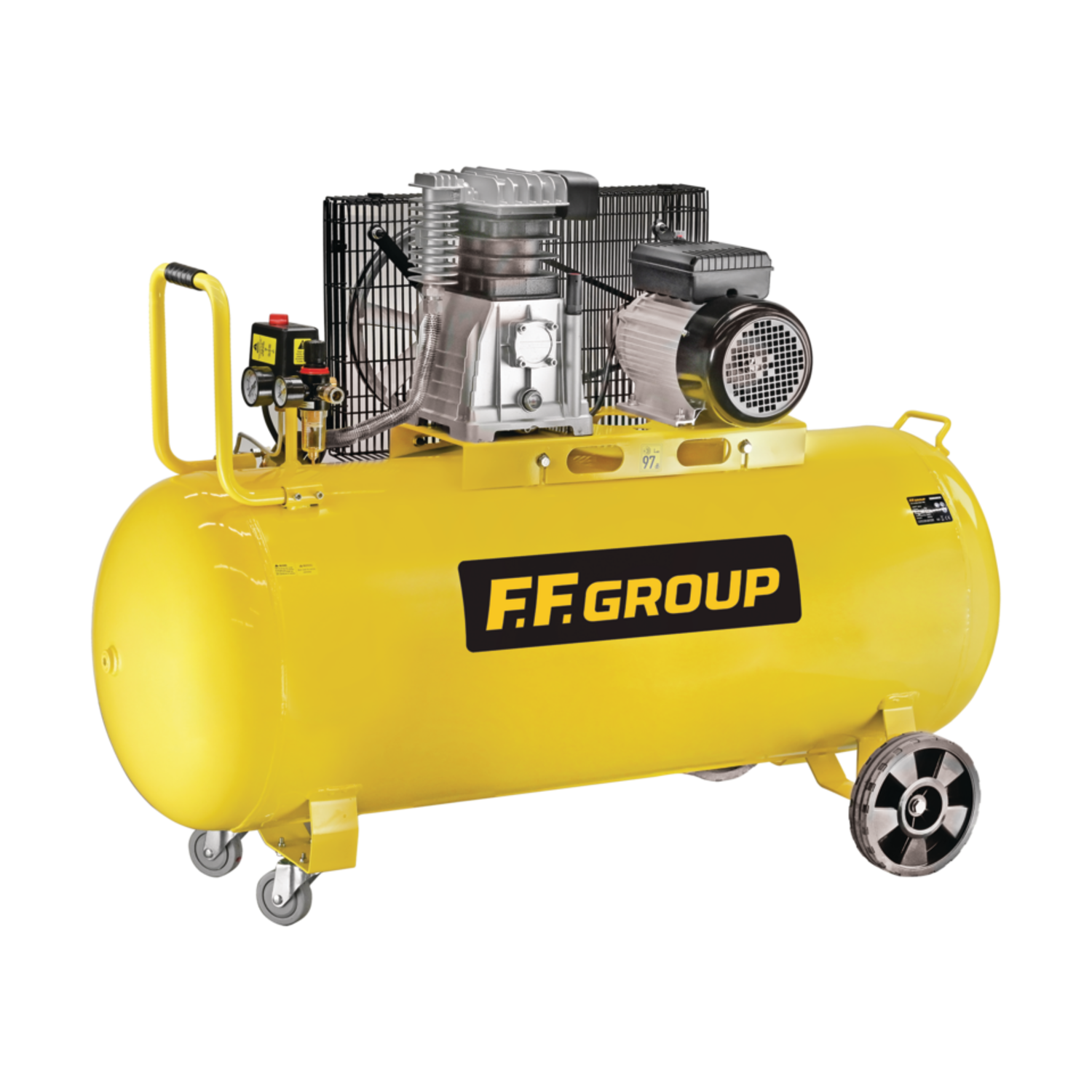 Επαγγελματικός ελαιολιπάντος, ιμάντας-driven (belt) αεροσυμπιεστής για συνεχή και βαριά χρήση, με δοχείο 200 L, ισχύ ~4 hp και μέγιστη πίεση ~10 bar. Κατάλληλος για εργαστήρια και βιομηχανική χρήση όπου απαιτείται μεγάλη παροχή αέρα και αντοχή.