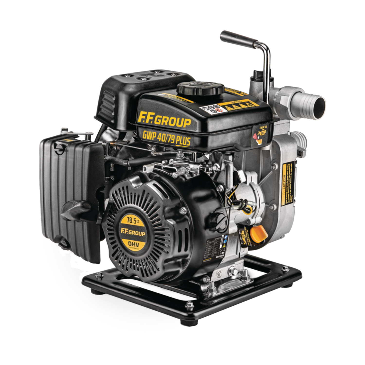 Βενζινοκίνητη αντλία επιφανείας (GWP 40/79 PLUS) για απομάκρυνση όμβριων ή καθαρών υδάτων, με κινητήρα 2,6 HP και σώμα/φτερωτή από αλουμίνιο. Κατάλληλη για ημι-επαγγελματική χρήση σε ιδιωτικούς ή δημόσιους χώρους.