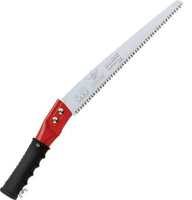 Χειροπρίονο/κονταροπρίονο κήπου με κυρτή λάμα 35 cm και γάντζο στο άκρο, κατάλληλο για κλάδεμα και εργασίες σε δέντρα και θάμνους. Είναι χειροκίνητο εργαλείο κήπου με έμφαση στην αξιοπιστία και την εργονομία.
