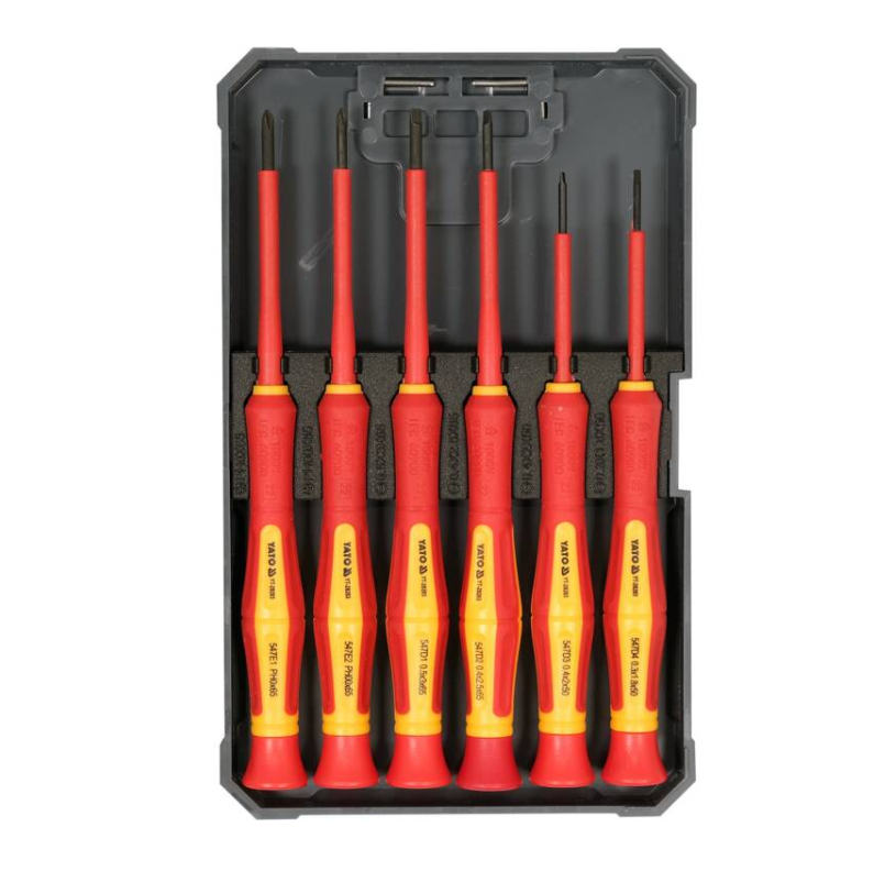 Σετ 6 κατσαβιδιών για ηλεκτρονικές και ηλεκτρολογικές εργασίες, μονωμένα για προστασία έως 1000V. Κατάλληλο για ακριβή και ασφαλή χρήση σε ηλεκτρικές εγκαταστάσεις.